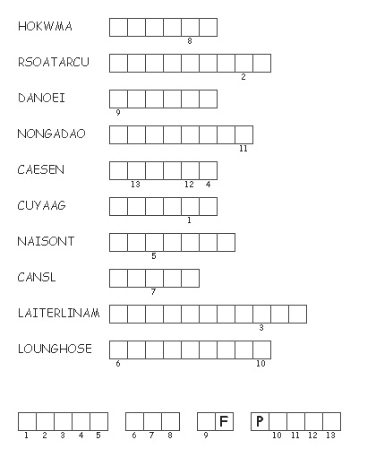 Confederacy. Unscramble each of the clue words. Copy the letters in